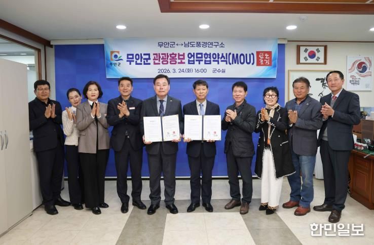 한민일보 서울포커스 박용남 기자 | 무안군은 지난 24일 군수실에서 남도지역 풍경정보를 전국에 제공·기록하는 단체인 남도풍경연구소와 자연·문화·관광자원 홍보를 위한 업무협약(MOU)을 체결했다.