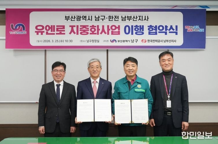 한민일보 서울포커스 임광현 기자 | 부산 남구는 '유엔로 지중화사업'과 관련해 지난 3월 25일 오전 10시 30분 남구청에서 한국전력공사 남부산지사와 업무협약을 체결했다고 밝혔다.
