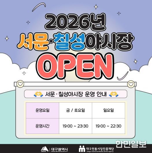 김정기 대구광역시장 권한대행 행정부시장은 “서문야시장의 활기와 칠성야시장의 낭만은 대구가 가진 최고의 자산 중 하나”라며 “올해도 해외 및 전국 각지에서 찾아오는 관광객들에게 다양한 즐거움을 선사하며 대구만의 맛과 멋을 느낄 수 있는 야간 축제의 장으로 만들어 가겠다”고 말했다.