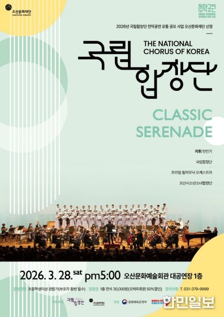 한민일보 서울포커스 임경복 기자 | (재)오산문화재단은 오는 28일 오후 5시 오산문화예술회관 대공연장에서 국립합창단의 신작 ‘CLASSIC SERENADE’를 전국 최초로 선보인다.