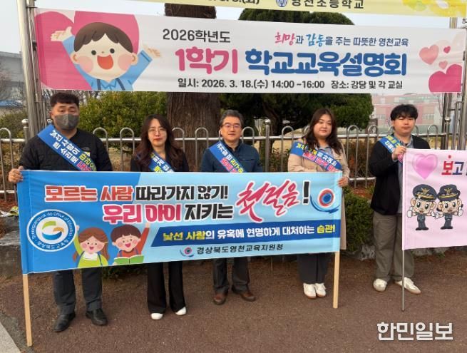 한민일보 서울포커스 김봉순 기자 | 경상북도영천교육지원청은 2026년 3월 26일 영천초등학교 교문 앞에서 영천경찰서 등 관계기관과 협력하여 어린이 약취 · 유인 예방을 위한 캠페인을 실시했다.