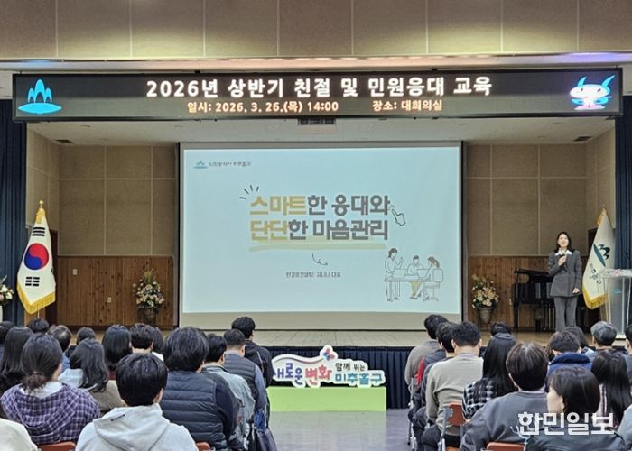 한민일보 서울포커스 백진욱 기자 | 인천 미추홀구는 26일 구청 대회의실에서 소속 직원 200여 명을 대상으로 ‘2026년 상반기 친절·민원 응대 교육’을 실시했다.