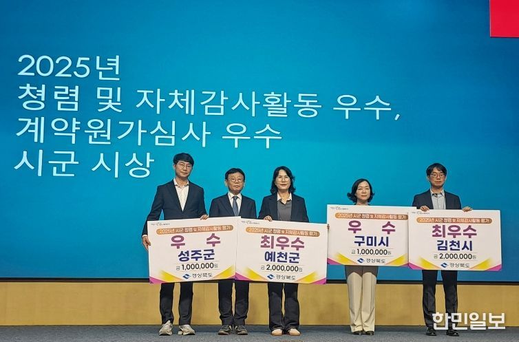 한민일보 서울포커스 임경복 기자 | 예천군은 경상북도가 실시한 '2025년 시·군 청렴 및 자체감사활동 평가'에서 군부 최우수기관으로 선정돼, 26일 구미에서 열린 '2026년 경상북도 청렴·감사인 워크숍'에서 최우수기관 표창을 수상하며 청렴 행정과 감사역량을 대외적으로 입증했다.