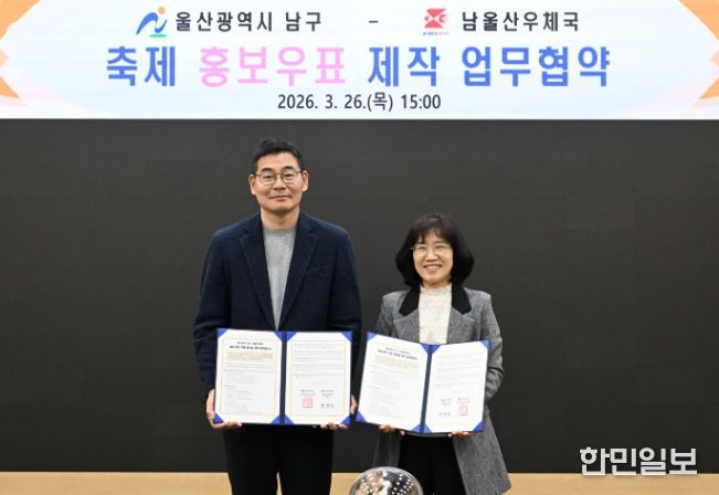 한민일보 서울포커스 기자 | 울산 남구는 26일 남구청 소회의실에서 남울산우체국과 울산고래축제와 장생포 수국페스티벌 홍보를 위한 ‘나만의 우표’제작 업무협약을 체결했다.