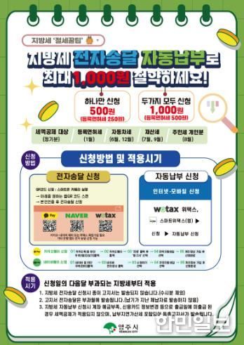 한민일보 서울포커스 김봉순 기자 | 영주시는 2026년 연중 지방세 납세자의 편의를 높이기 위해 '지방세 자동납부 및 전자송달 신청'을 상시 접수한다고 밝혔다.