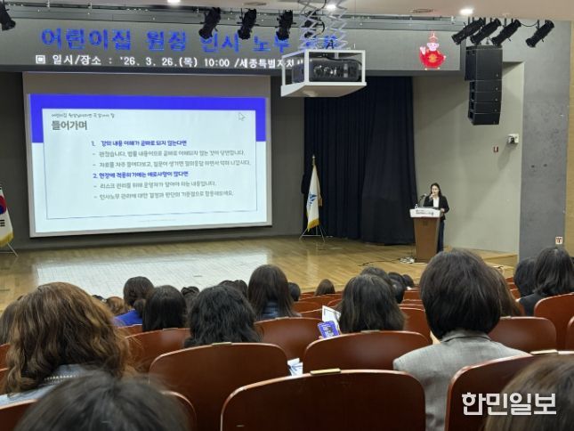 한민일보 서울포커스 김윤이 기자 | 세종특별자치시육아종합지원센터는 3월 26일 세종특별자치시청 4층 여민실에서 관내 어린이집 원장 200여명을 대상으로‘2026 노무관리: 근로기준법부터 모부성보호까지’교육을 실시했다고 밝혔다.