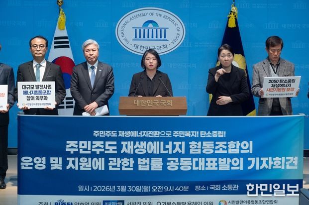 한민일보 서울포커스 임경복 기자 | 기본소득당 용혜인 의원은 30일 오전 9시 40분, 안호영ㆍ서왕진 의원과 함께 국회 소통관에서 기자회견을 열고 '주민주도 재생에너지 협동조합의 운영 및 지원에 관한 법률안'을 공동대표발의했다고 밝혔다.