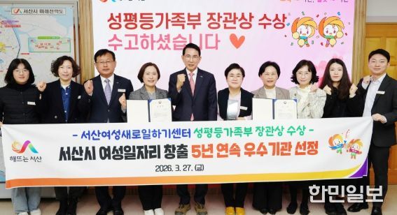 한민일보 서울포커스 임경복 기자 | 충남 서산시는 ‘서산여성새로일하기센터’가 제15회 여성새로일하기센터 유공 포상식에서 우수기관으로 선정됐다고 밝혔다.