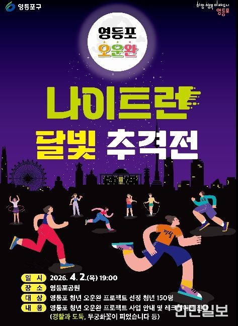 한민일보 서울포커스 임경복 기자 | 영등포구가 오는 4월 2일 저녁 7시, 영등포공원에서 ‘영등포 오운완 나이트 런(Night Run): 달빛 추격전’을 개최하고, 청년 오운완 프로젝트의 본격적인 시작을 알린다고 밝혔다.