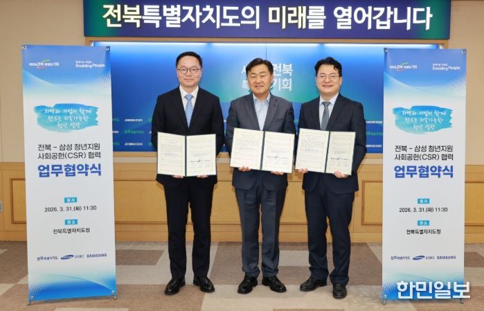 한민일보 서울포커스 박용남 기자 | 전북특별자치도가 삼성물산·삼성전자와 손잡고 전북 청년 지원을 위한 사회공헌 파트너십을 본격 가동한다.