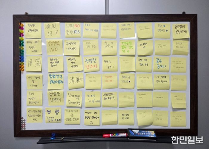 이번 캠페인은 공원사업과 직원들이 직접 청렴 다짐 문구를 메모지에 작성하고, 화이트보드에 부착하는 방식으로 진행됐다.