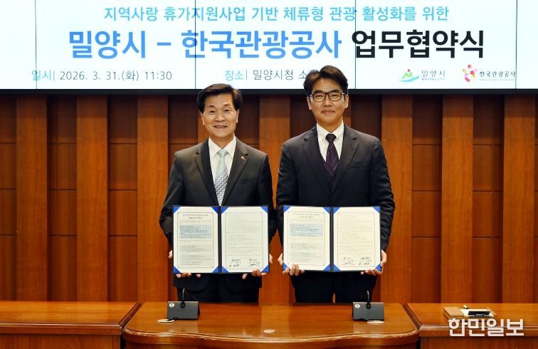 그동안 밀양시와 한국관광공사는 지역관광추진조직(DMO) 사업, 관광두레 사업, 디지털 관광주민증 사업 등 다각적인 협력을 이어왔다. 특히 올해는 무장애관광 DB 표준화 구축사업, 지역사랑 휴가지원사업, 지역사랑 철도여행 ‘여행가는 달’ 행사 등을 추진하며 협력 범위를 확대했다.