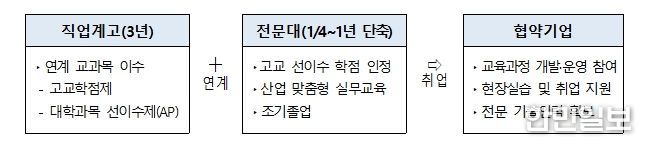 이 사업은 전문대학이 직업계고와 협력하여 교육과정을 연계하고 전문학사 취득 기간을 1학기 이상 단축함으로써, 지역 산업에 필요한 전문 기술인재를 조기에 양성할 수 있도록 올해 처음 재정지원 사업으로 추진된다.