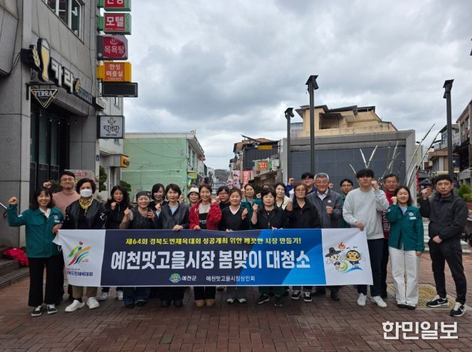 한민일보 서울포커스 임경복 기자 | 예천군 예천맛고을시장 상인회(회장 양종례)는 제64회 경북도민체육대회를 앞두고 지난 31일 오후 3시, 상인 30여 명이 참여한 가운데 ‘봄맞이 대청소’를 실시했다.