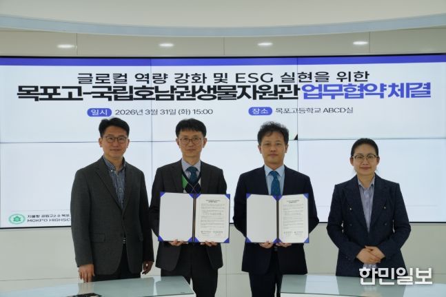 한민일보 서울포커스 진광성 기자 | 국립호남권생물자원관과 목포고등학교은 3월 31일, 생물자원 및 환경교육 확대와 학생들의 진로탐색 기회 제공을 위해 업무협약(MOU)을 체결했다.