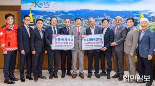 한민일보 서울포커스 김은금 기자 | 합천군은 31일 산림조합중앙회 엔지니어링사업본부와 도내 7개 시·군 산림조합이 군수실을 방문해 아동복지기금과 인재육성기금으로 총 4,000만원을 기탁했다고 밝혔다.