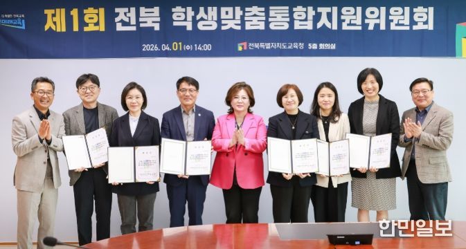 한민일보 서울포커스 임경복 기자 | 전북특별자치도교육청은 1일 본청 5층 회의실에서 ‘2026년 제1회 전북 학생맞춤통합지원위원회’를 개최하고, 복합 위기 학생 지원을 위한 광역 단위의 통합 지원 체계를 본격화했다.
