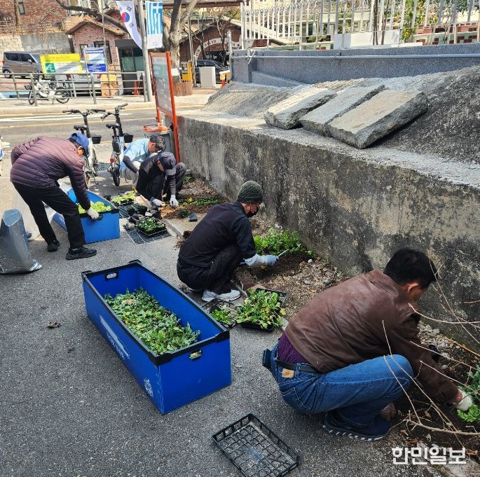 한민일보 서울포커스 김봉순 기자 | 서울 성북구 성북동 주민센터가 봄을 맞아 쾌적한 마을 환경 조성을 위해 환경정비 활동과 꽃 식재 행사를 추진했다.