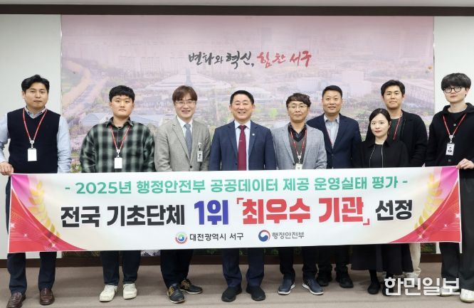 한민일보 서울포커스 임철현 기자 | 대전 서구는 행정안전부 주관 ‘2025년 공공데이터 제공 운영실태 평가’에서 전국 226개 기초자치단체 중 유일하게‘최우수(매우 우수)’ 등급을 받으며 전국 1위를 차지했다.
