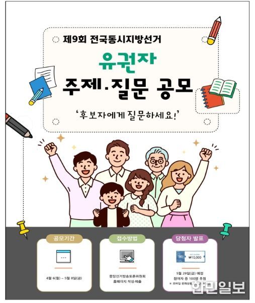 한민일보 서울포커스 임경복 기자 | 중앙선거방송토론위원회는 제9회 전국동시지방선거 후보자토론회에서 토론주제와 질문사항 선정에 활용하기 위해 4월 6일부터 ‘유권자 주제·질문 공모’를 실시한다고 밝혔다.