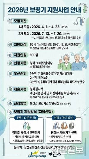 한민일보 서울포커스 박용남 기자 | 장성군이 올해부터 어르신 보청기 지원사업에 ‘선택형 지원 방식’을 도입한다.