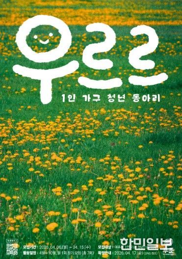 한민일보 서울포커스 전희주 기자 | 여주시청년활동지원센터 푸릇은 오는 4월 1인가구 청년 네트워킹 동아리 '우르르' 참여자를 모집한다고 밝혔다.