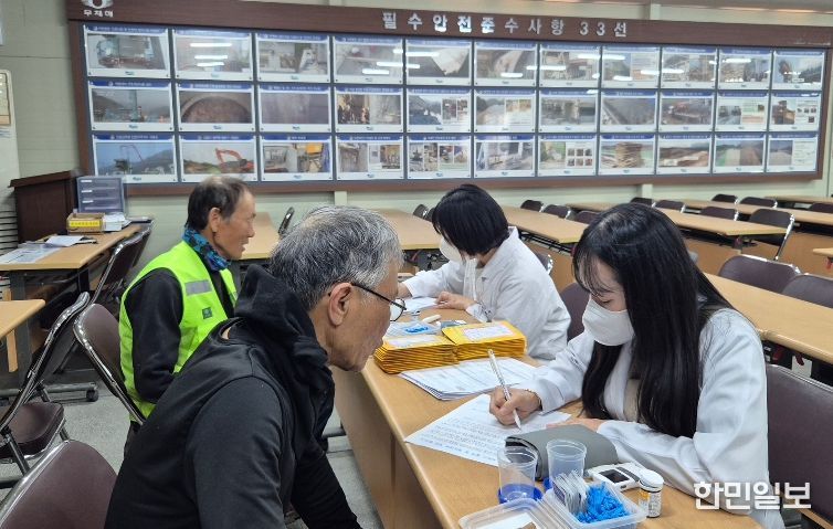 이번 상담실은 신원면 도로건설 현장에서 근무하는 65세 이상 근로자를 대상으로 운영됐으며, 현장 근로자들이 업무 특성상 병원 방문이나 정기적인 건강관리가 쉽지 않아 고혈압·당뇨 등 심뇌혈관질환 선행 질환을 인지하지 못하는 경우가 많다는 점을 고려했다.