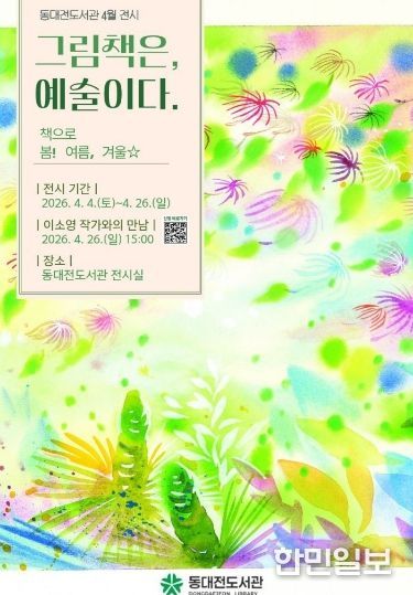 한민일보 서울포커스 김서윤 기자 | 동대전도서관은 4월 4일부터 26일까지 1층 전시실에서 이소영 그림책 원화 전시‘그림책은 예술이다: 책으로 봄! 여름, 겨울☆ 展’을 개최한다.