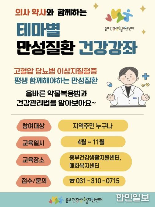 중부건강생활지원센터는 이번 강좌를 통해 지역주민의 만성질환 예방 및 관리 역량을 높이고, 향후 고혈압·당뇨병 표준화 교육과 연계해 지속적인 건강관리 참여를 유도할 계획이다.