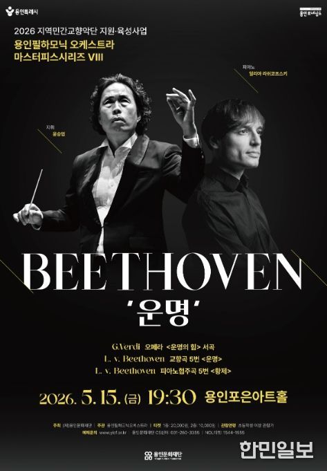 한민일보 서울포커스 김성윤 기자 | 용인문화재단은 오는 5월 15일 오후 7시 30분 용인포은아트홀에서 ‘2026년 지역민간교향악단 지원·육성사업’의 첫 공연으로 용인필하모닉오케스트라의 기획공연 '마스터피스 시리즈 Ⅷ - 베토벤 ‘운명’'을 선보인다.