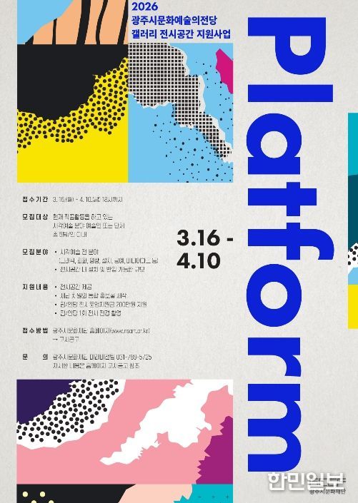 한민일보 서울포커스 임경복 기자 | (재)광주시문화재단은 ‘2026 광주시문화예술의전당 갤러리 전시공간지원사업 'Platform'’ 참여 작가를 4월 10일까지 공모한다.
