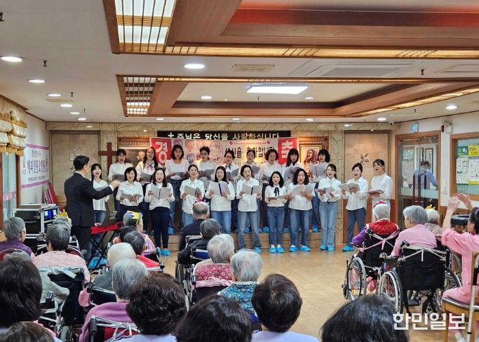 한민일보 서울포커스 김성윤 기자 | 안양시 동안구여성합창단은 지난 3일 해피전문요양원(안양시 만안구 덕천로 46)을 방문해 치매 어르신들을 위한 ‘찾아가는 음악회’를 개최했다.
