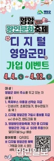한민일보 서울포커스 임경복 기자 | 영암군이 2026 영암 왕인문화축제를 맞아 관광객 참여를 유도하기 위한 ‘디지털 영암군민 가입 이벤트’를 운영한다고 밝혔다.