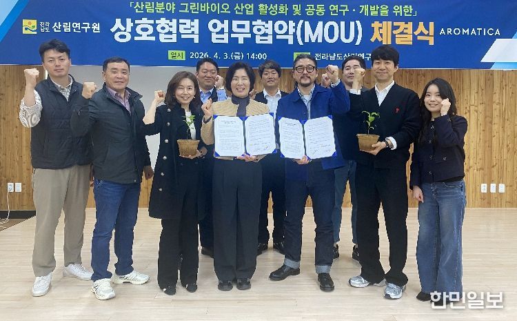 한민일보 서울포커스 박정민 기자 | 전라남도산림연구원은 3일 ㈜아로마티카와 업무협약을 하고, 전남의 비교우위 난대 산림자원에서 추출한 에센셜오일을 활용해 케이(K)-뷰티 화장품 개발과 산업화를 본격 추진한다고 밝혔다.