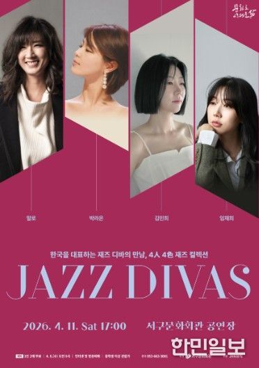 한민일보 서울포커스 임경복 기자 | 서구문화회관은 4월 11일 오후 5시 서구문화회관 공연장에서 한국을 대표하는 재즈 디바 말로, 박라온, 김민희, 임채희를 초청하여'JAZZ DIVAS'콘서트를 개최한다.