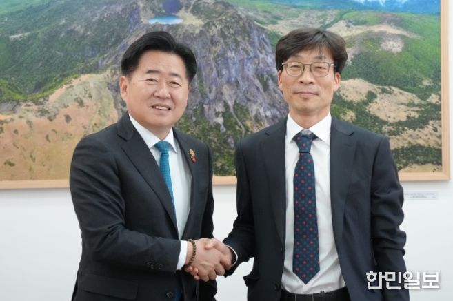 오영훈 제주도지사는 2일 도청 집무실에서 송상교 진실화해위원장과 면담을 갖고 4·3 행방불명인 유해 발굴 및 신원확인 사업의 협력 방안을 논의했다.