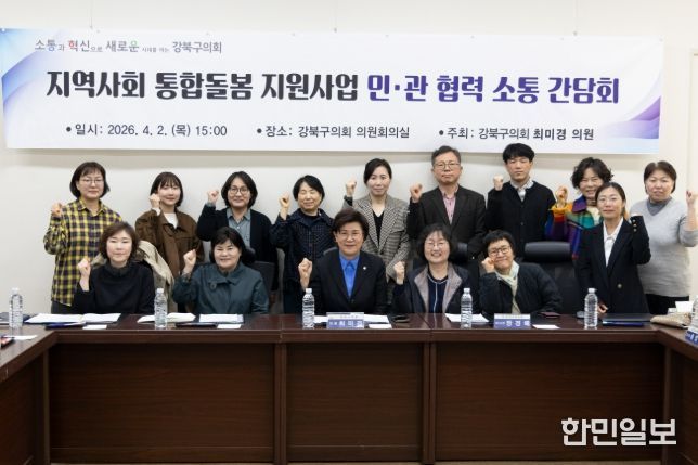 한민일보 서울포커스 국용호 기자 | 강북구의회 최미경 의원(우이동, 인수동, 수유1동)은 지난 4월 2일, 지역사회 통합돌봄 지원사업의 효율적인 운영과 민·관 협력 체계 강화를 위한 소통 간담회를 개최했다.