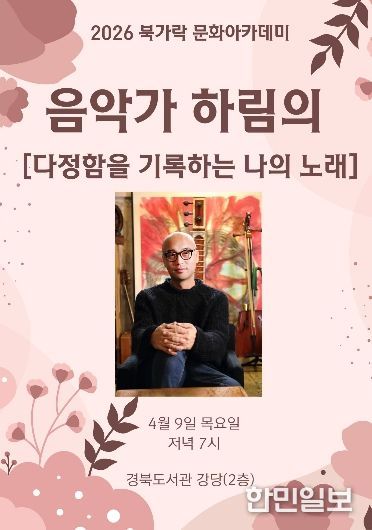 한민일보 서울포커스 김은금 기자 | 경북도서관은 오는 4월 9일 저녁 7시, 북가락문화아카데미 3회차 프로그램으로 음악가 하림의 공연 ‘다정함을 기록하는 나의 노래’를 개최한다.