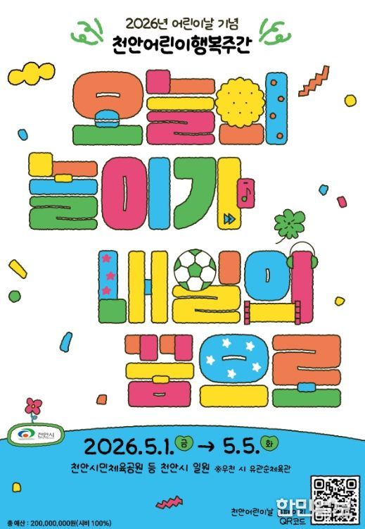 한민일보 서울포커스 황준형 기자 | 천안시는 제104회 어린이날을 맞아 내달 1~ 5일 천안시 일원에서 ‘2026 천안어린이행복주간’을 운영한다고 6일 밝혔다.