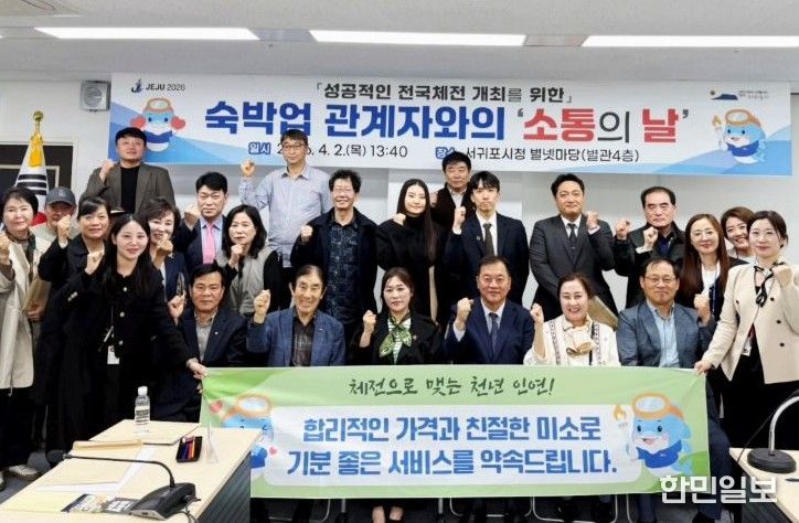 한민일보 서울포커스 김다남 기자 | 서귀포시는 2026년 전국(장애인)체전의 성공적인 개최를 앞두고 지역 숙박업계와의 현장 소통을 강화하며 관광수용태세 개선에 본격 나서고 있다.
