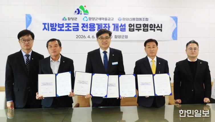 한민일보 서울포커스 김서윤 기자 | 함양군은 6일 오전 11시 군수실에서 지방보조금의 투명한 집행과 체계적인 관리를 위해 새마을금고 및 신협과 ‘지방보조금 전용계좌 개설’ 업무협약을 체결했다.