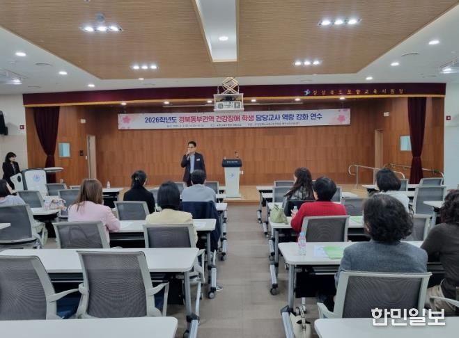 한민일보 서울포커스 임경복 기자 | 포항교육지원청은 2026년 4월 3일 포항교육지원청 5층 대회의실에서 경북동부권역(포항,영덕,울진,청송,울릉) 건강장애학생 담당교사 30여명을 대상으로 2026학년도 경북동부권역 건강장애학생 담당교사 역량강화 연수를 실시했다.
