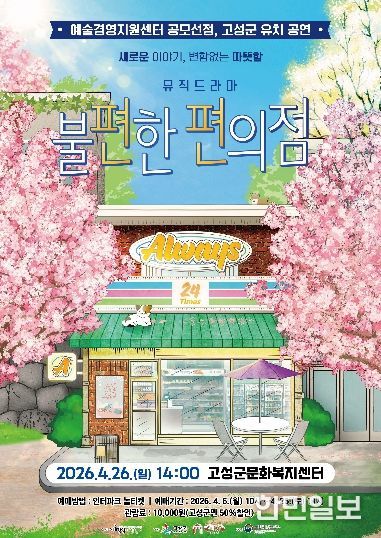 한민일보 서울포커스 진광성 기자 | 평화경제 거점도시 강원 고성군은 '2026년 공연예술 지역유통 지원사업'의 일환으로 연극 '불편한 편의점'을 오는 4월 26일 고성군 문화복지센터에서 개최한다.