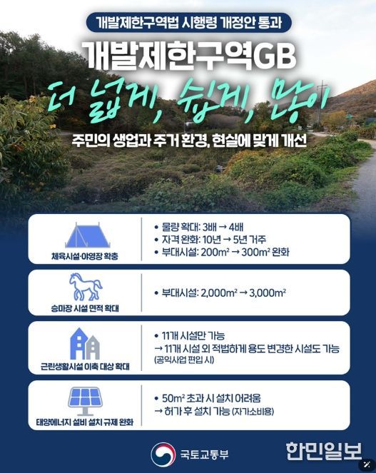 한민일보 서울포커스 임경복 기자 | 개발제한구역법 시행령 개정안 통과