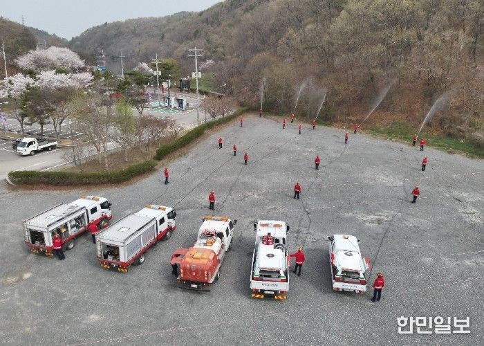 군은 지난해 가을철 산불조심 기간부터 대형 에어텐트와 이동식 수조 등을 추가로 구입해 산불현장지휘본부를 구성하고, 담수가 어려운 지역에서도 신속한 진화가 가능하도록 준비 사항을 갖춰 대비해 왔다.