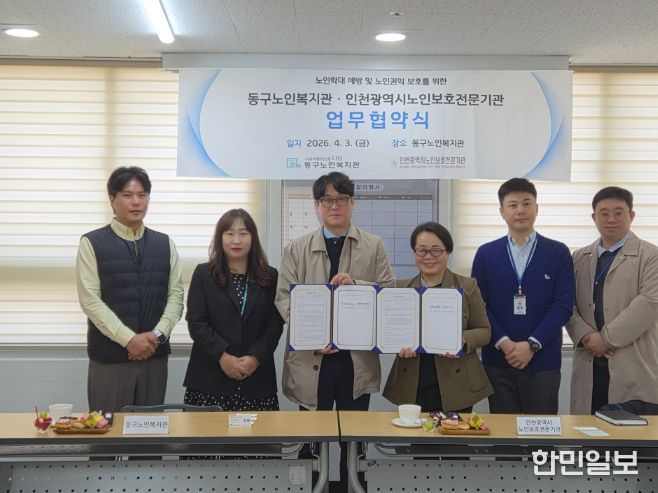 한민일보 서울포커스 백진욱 기자 | 인천 동구노인복지관과 인천시 노인보호전문기관은 지난 3일 동구노인복지관에서 노인학대 예방 및 노인권익 보호를 위한 업무협약을 체결했다고 밝혔다.