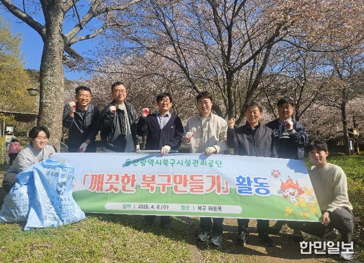 한민일보 서울포커스 임경복 기자 | 울산광역시 북구 시설관리공단(이사장 임정식)은 4월 8일 북구 관내 화동못 일원 및 공단 시설 외곽 등에서 '깨끗한 북구만들기' 활동을 전개했다. 이번 환경 정화 활동에는 관리직 임직원 9명이 직접 참여했다.