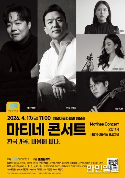 한민일보 서울포커스 임광현 기자 | 해운대문화회관은 17일 오전 11시 해운홀에서 ‘마티네 콘서트’를 개최한다.