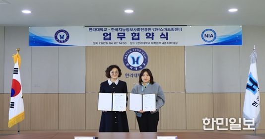 한민일보 서울포커스 곽중희 기자 | 강원특별자치도 강원스마트쉼센터는 4월 7일 오후 2시 30분 한라대학교 학생생활상담센터와 대학생의 스마트폰 과의존 예방 및 건강한 디지털 사용문화 조성을 위한 업무협약을 체결했다고 밝혔다.