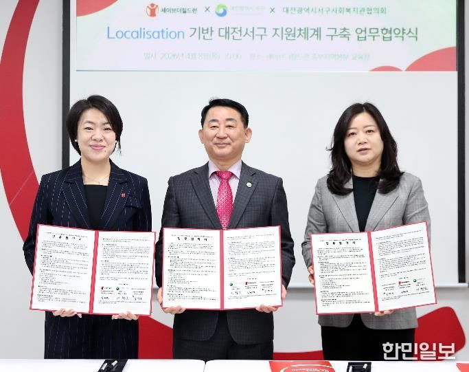 한민일보 서울포커스 임경복 기자 | 대전 서구는 지속 가능한 취약계층 아동 지원체계 마련을 위해 9일 세이브더칠드런 중부지역본부 대전아동권리센터에서 3자 업무협약을 체결했다.